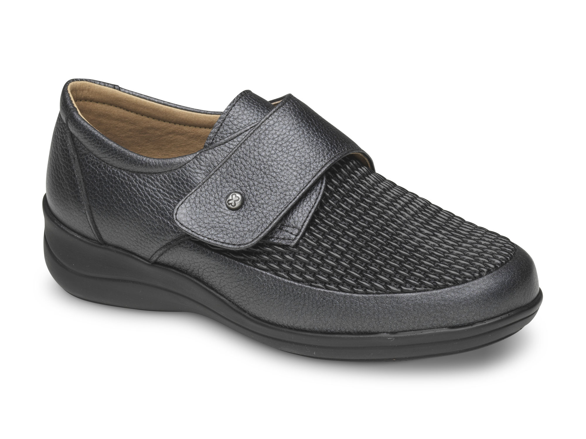 Avec une conception de largeur spéciale, ce modèle offre confort et soutien aux personnes qui ont besoin de soins particuliers pour leurs pieds. Sa tige élastique s'adapte à la forme de vos pieds et est spécialement conçue pour soulager la pression sur les orteils en griffe et en marteau, offrant confort et flexibilité à chaque mouvement. Le système de fermeture Velcro facilite l'enfilage et le retrait des chaussures, garantissant un ajustement sûr et confortable à tout moment, sans complications. Cette chaussure allie fonctionnalité et style, assurant un ajustement optimal à chaque pas.