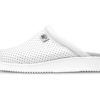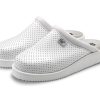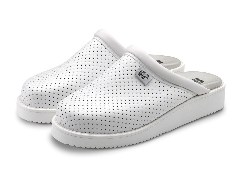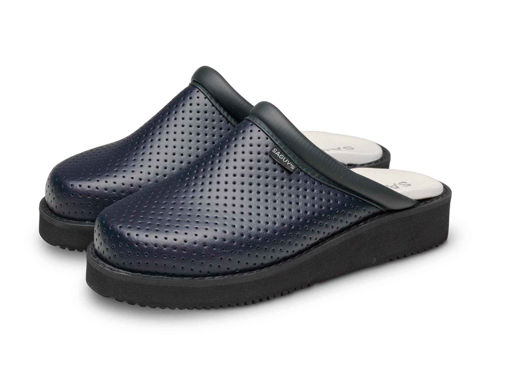 Zueco unisex fabricado en piel de vacuno con acabado PU, con pala picada para una mejor transpiración del pie. Su plantilla de piel y la suela de microporoso ligero de Eva, aportan comodidad para los pies. Indicado para personas que permanecen largas jornadas de pie, y precisan un calzado profesional, con diseño actual, seguro, confortable y ligero. La altura de cuña es ideal para descanso del pie.
