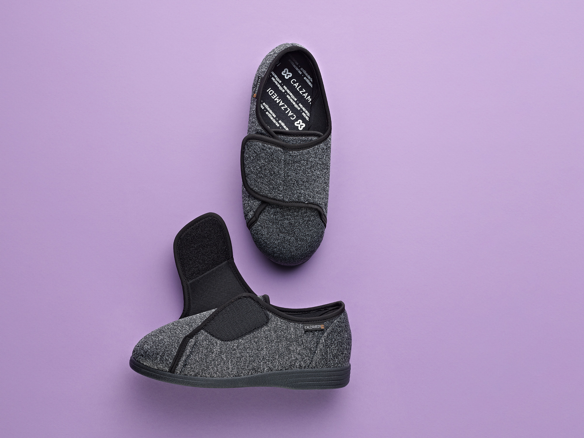 Es una zapatilla cómoda y flexible fabricada con hormas de fabuloso calce y profundidad que permiten alojar plantillas correctoras personalizadas. Su cierre mediante velcro permite adaptarla al pie a cualquier hora del día. Es ideal para pies sensibles con patologías como hallux valgus (juanetes) y/o linfedemas.