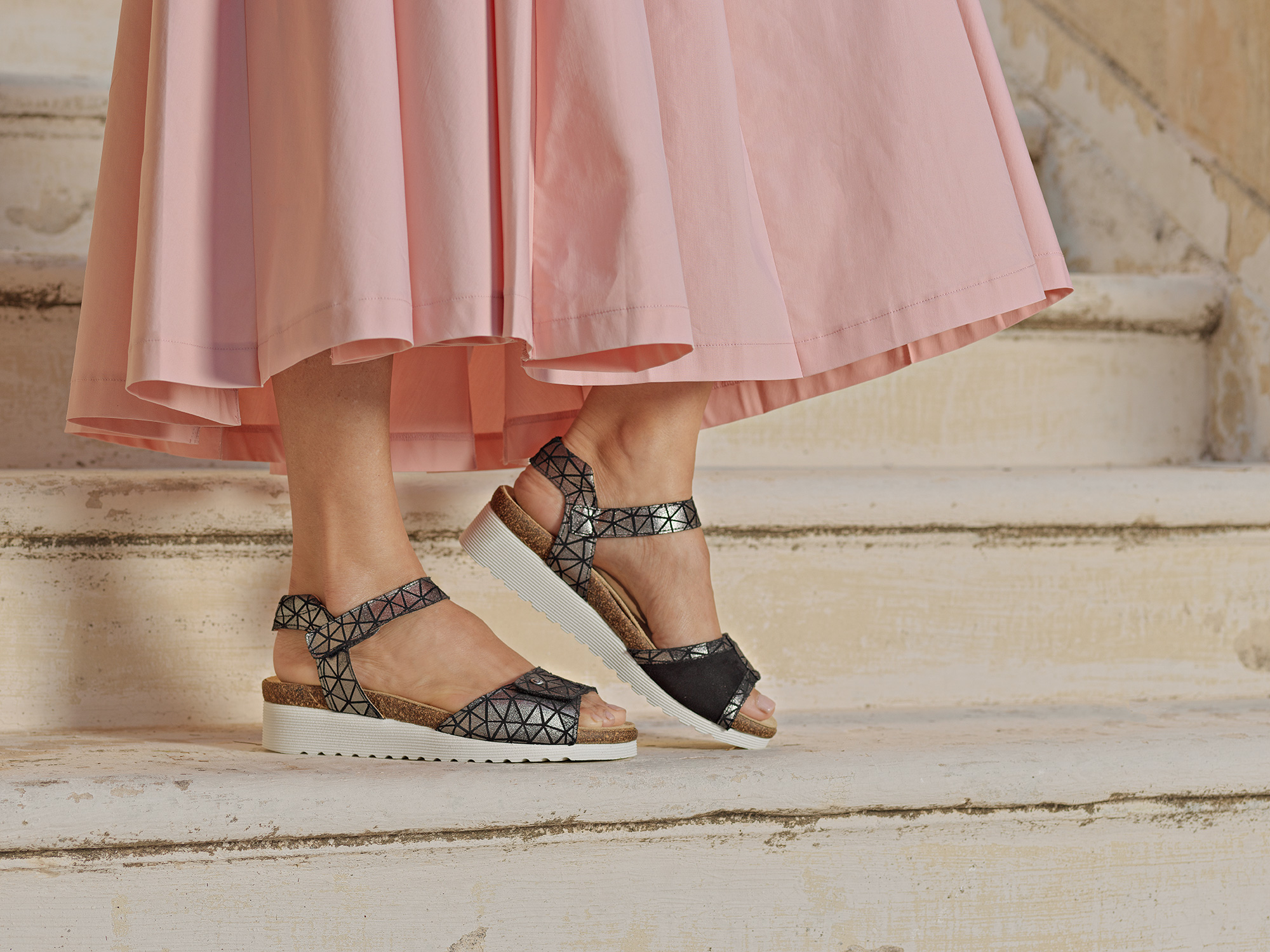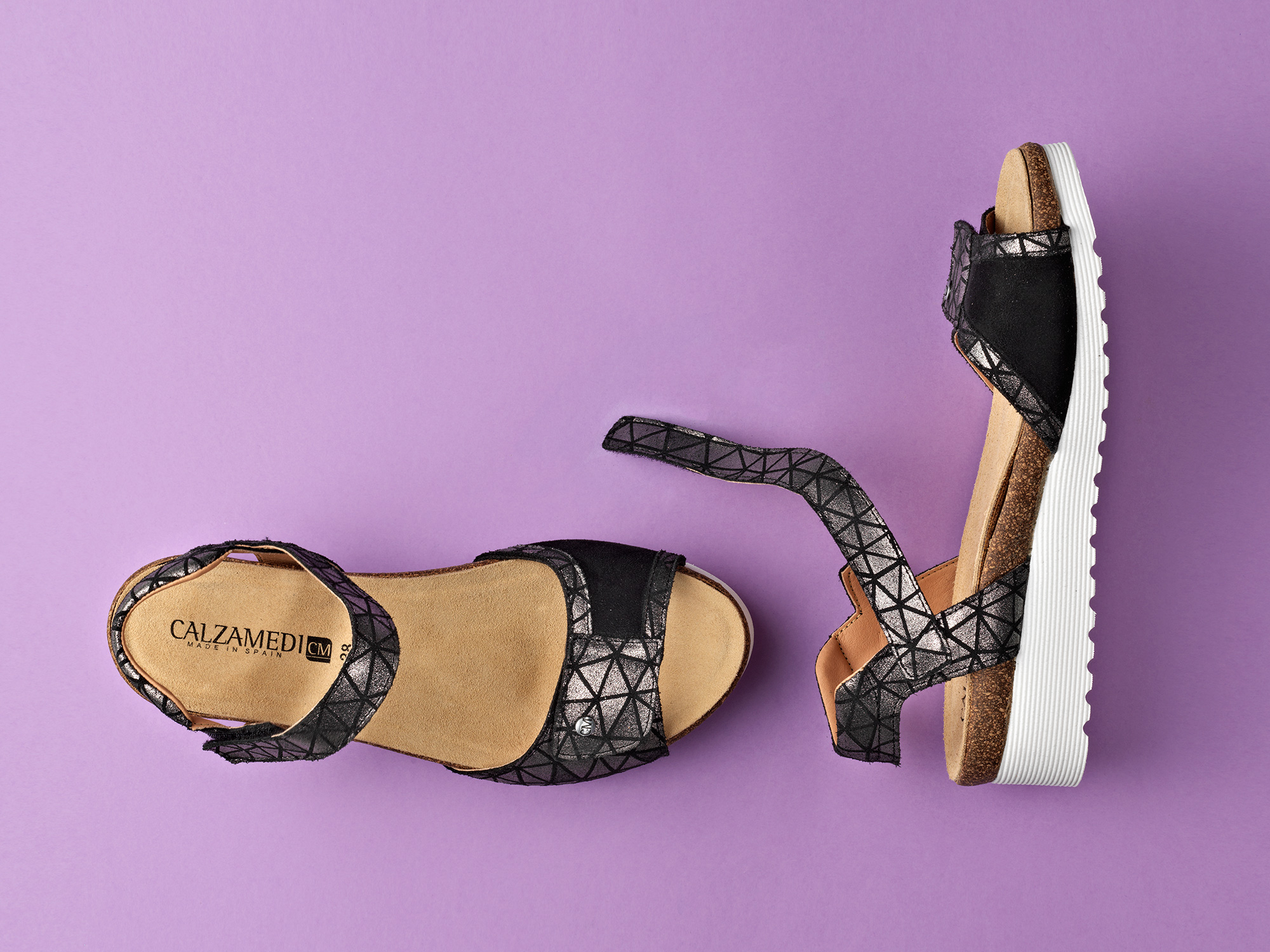 Sandalia ideal para pies delicados y sensibles, incluye juanetera de material elástico para proteger y reducir las presiones en la zona de hallux valgus o juanete. Se adapta a la deformación mimando la zona y reduciendo el dolor. Su cierre de doble velcro permite su apertura total y un ajuste perfecto a la hora de colocarla en el pie. Este calzado es ideal para personas con: Hallux Valgus (juanetes).