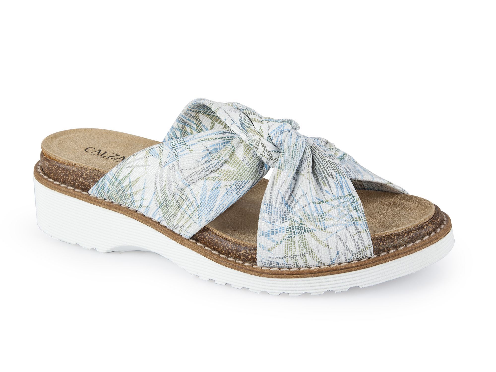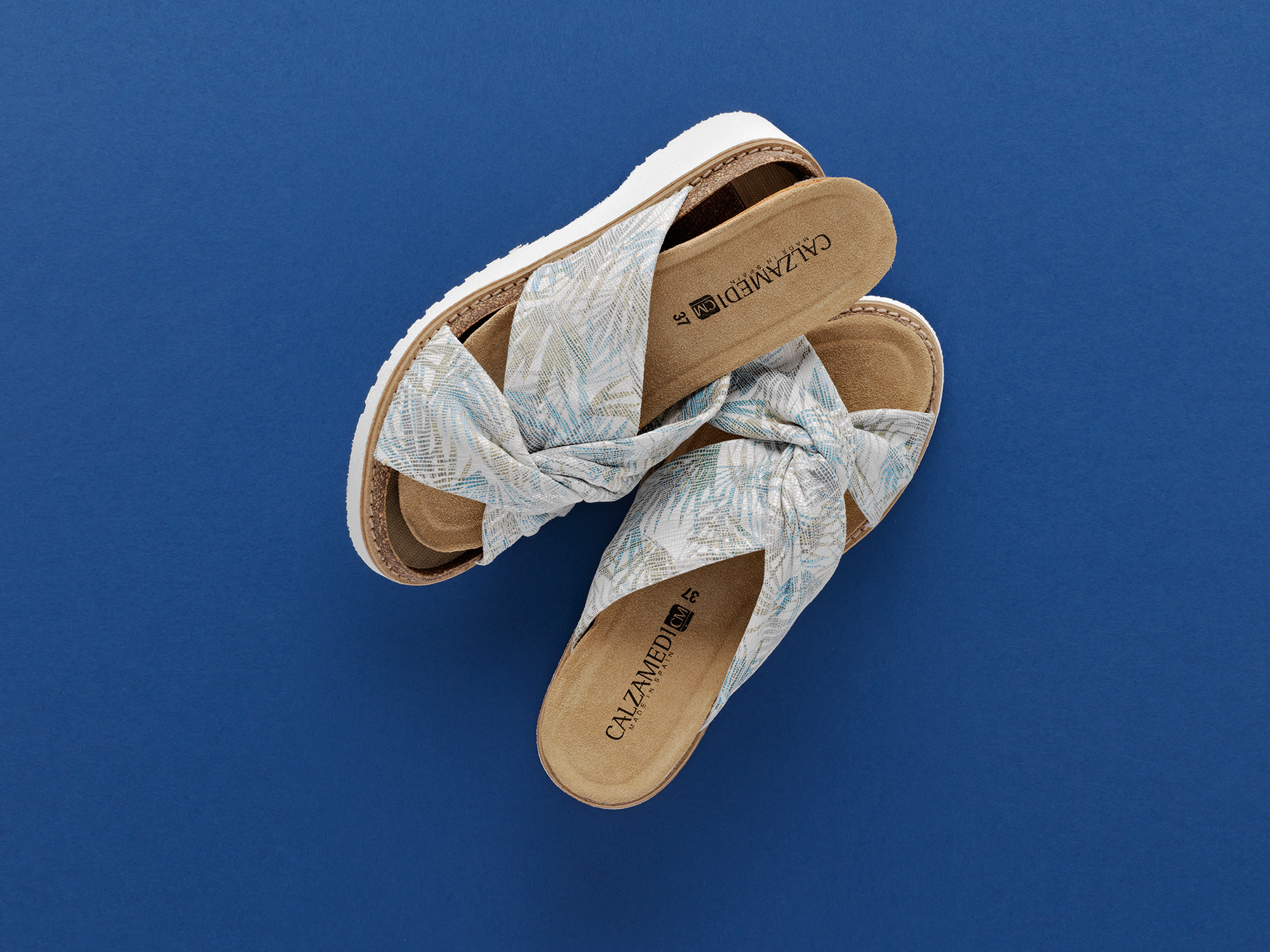 Sandalias con un estampado muy veraniego y con sujeción de tira cruzada en empeine. Piel muy adaptable y de máxima calidad. Plantilla anatómica incluida y extraíble.